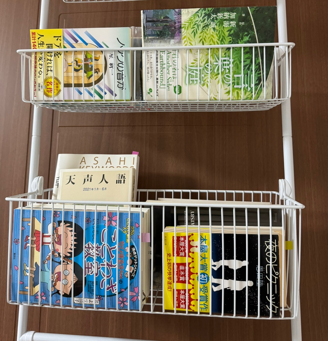 수납걸이를 책장으로 활용한 뿌듯한 어느 하루의 일과였습니다.
